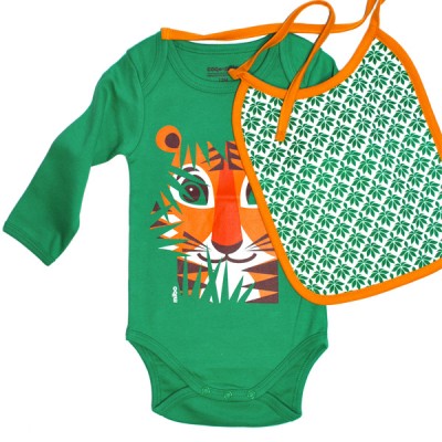 Be the first to review “Baby gift set: organic cotton matching bodysuit, bib and suitcase – Tiger”